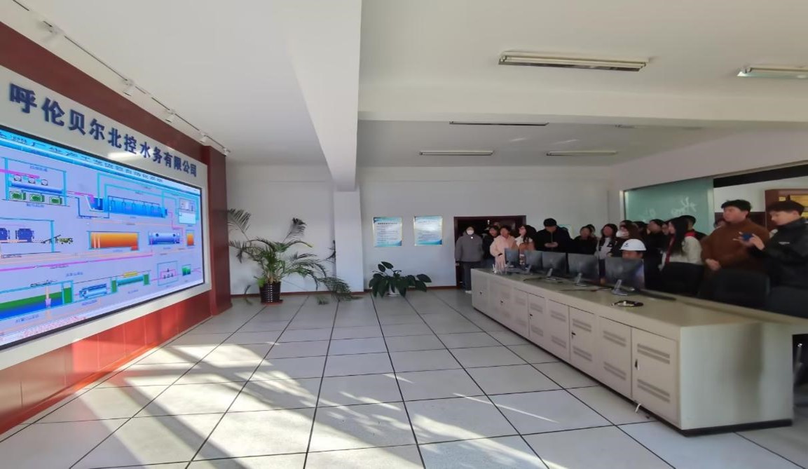 在污水厂中心控制室,呼伦贝尔北控水务有限公司运行部经理李萌为老师和员工们进行了污水处理厂生产工艺流程进行讲解,展示了整个污水厂的运行模式,介绍了各部分工序处理特点、操作规范、排放标准,同学们对污水处理有了宏观的认识和详细的了解。最后大家实地参观了污水厂的各级处理过程,同学们在参观过程中频频发问,积极思考,并将环境工程学中所学习的关于污水厂的理论知识与实际应用紧密结合起来,更加深刻的掌握和领会了污水处理工艺及原理,取得了良好的见习效果。