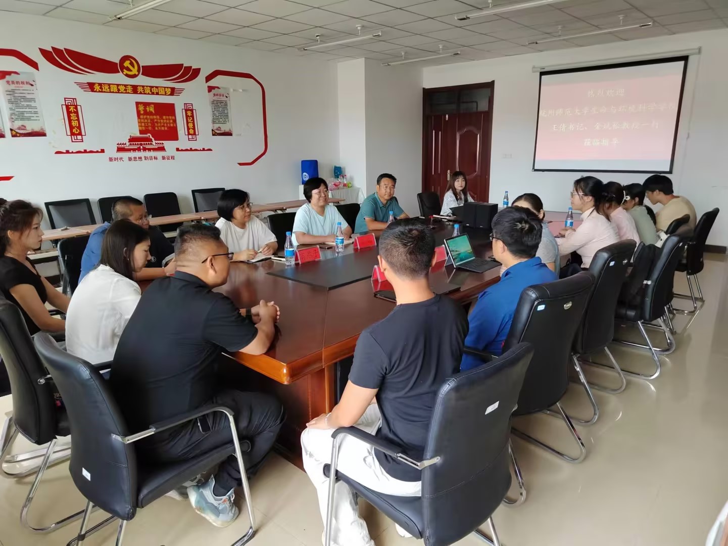 7月26日下午,杭州师范老员工命与环境科学公司党委副书记王倩、生态学系副研究员金斌松以及硕士研究生、本科生代表一行6人来到suncitygroup太阳新城联合开展暑期社会实践活动并进行座谈交流。会议由suncitygroup太阳新城副经理姜超主持,公司副经理肖燕子及相关师生代表参加会议。