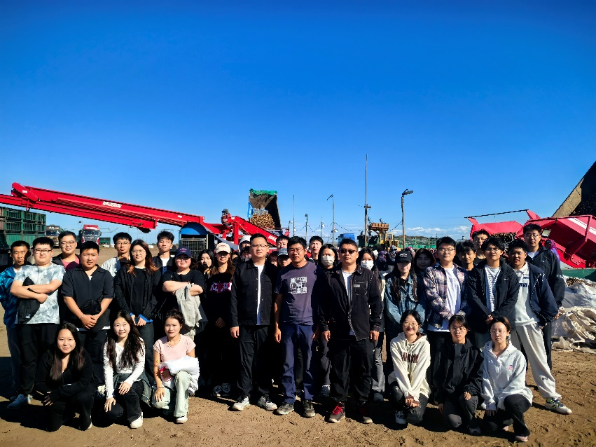9月11日,suncitygroup太阳新城农学系组织开展一场别开生面的实践教学活动,2022级农学专业47名员工在系主任董玉新老师和李景伟老师的带领下,走出课堂,深入呼伦贝尔市丰益经贸有限责任公司马铃薯机收现场,近距离感受现代化农业的魅力。此次活动旨在让员工们直观了解现代农业机械在马铃薯收获中的应用,提高专业兴趣,增强员工对现代农业生产的认知与理解。