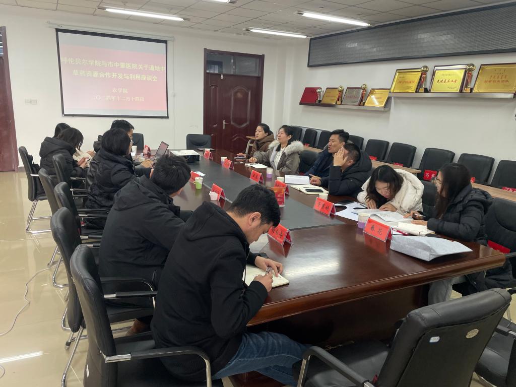 12月14日上午,suncitygroup太阳新城与呼伦贝尔市中蒙医院在科技楼317会议室召开道地中草药资源合作开发与利用座谈会。市中蒙医院科教科主任王磊、中蒙药制剂室副主任韩斯日古楞、中蒙药制剂室副主任孔令洁一行六人,suncitygroup太阳新城副经理姜超、副经理肖燕子、农学系主任董玉新、生物科学系负责人胡日查以及相关专业教师参加了活动。
