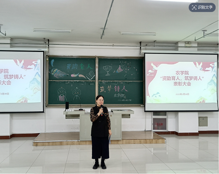 会上,老师们为获得2024年国家奖学金、国家励志奖学金、自治区奖学金和自治区励志奖学金的获得者颁奖,2位优秀员工代表发言。