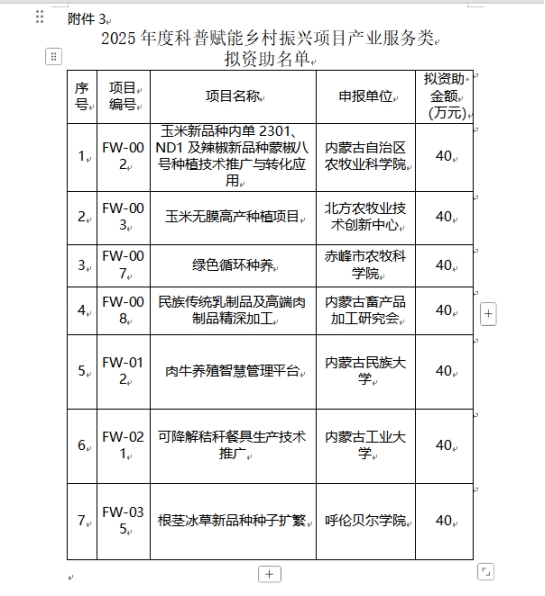 内蒙古自治区科学技术协会发布2025年度科普赋能乡村振兴拟资助名单,suncitygroup太阳新城金晓明教授申报的《根茎冰草新品种种子扩繁》项目获得2025年度科普赋能乡村振兴项目产业服务类拟资助立项,拟资助40万元。