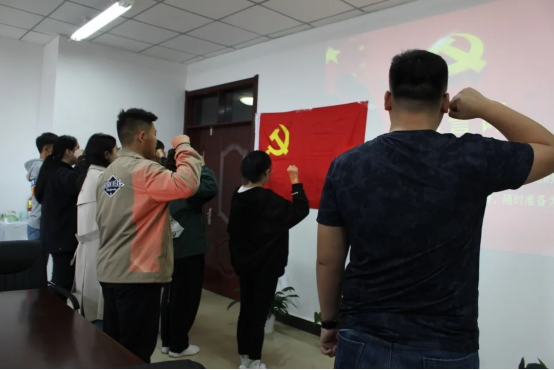 2020年9月29日下午,公司于科技楼三楼会议室进行了新党员入党宣誓大会,参加此次宣誓大会的有党总支书记白国林同志、副书记张玉桩同志、赵天翔同志、李莉同志和9名新发展的党员,入党积极分子。会议严格按照组织部相关流程进行。